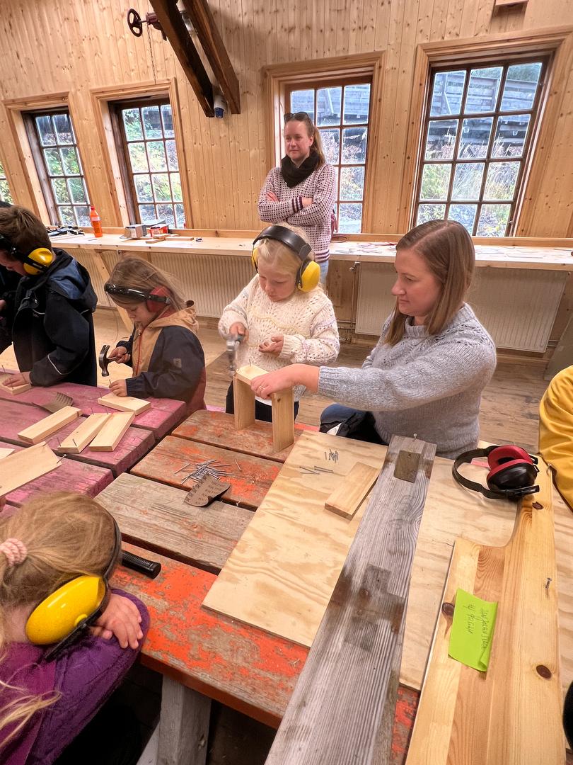 Uka startet med tur til Norsk Sagbruksmuseum på Spillum, der 13 barn og tilhørende voksne fikk en opplevelsesrik dag som både snekker og oppdager. Temaet for dagen var dampmaskiner, bærekraft og hvordan sagbruket fungerte i gamle dager. Etter lunsj ble det liv i snekkerverkstedet, der alle barna fikk lage sin egen settekasse, en aktivitet som skapte både stolthet og trespon i håret.