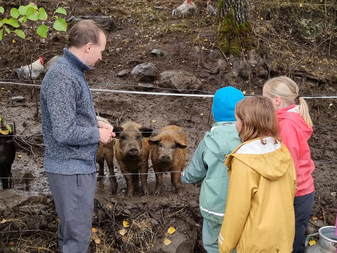 Neste dag gikk turen til Tinglum gård, en perle fylt med dyr og engasjement. Barna fikk hilse på ullgriser, høner, kaniner og geiter, og de fikk være med på alt fra melking og foring til å lage vafler av geitemelk. Da strømmen gikk midt i vaffelsteking, tok ingen panikk, latteren satt løst, og etterhvert kom strømmen tilbake slik at resultatet ble en lunsj som smakte ekstra godt. Mange fikk også prøvd seg på å snakke litt engelsk med gårdens internasjonale hjelper.