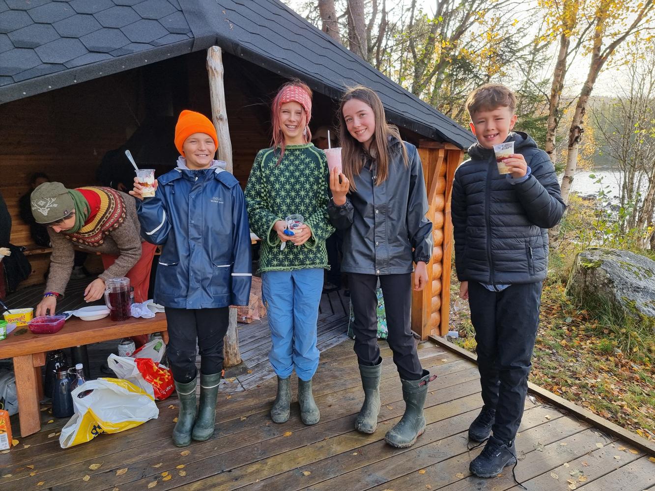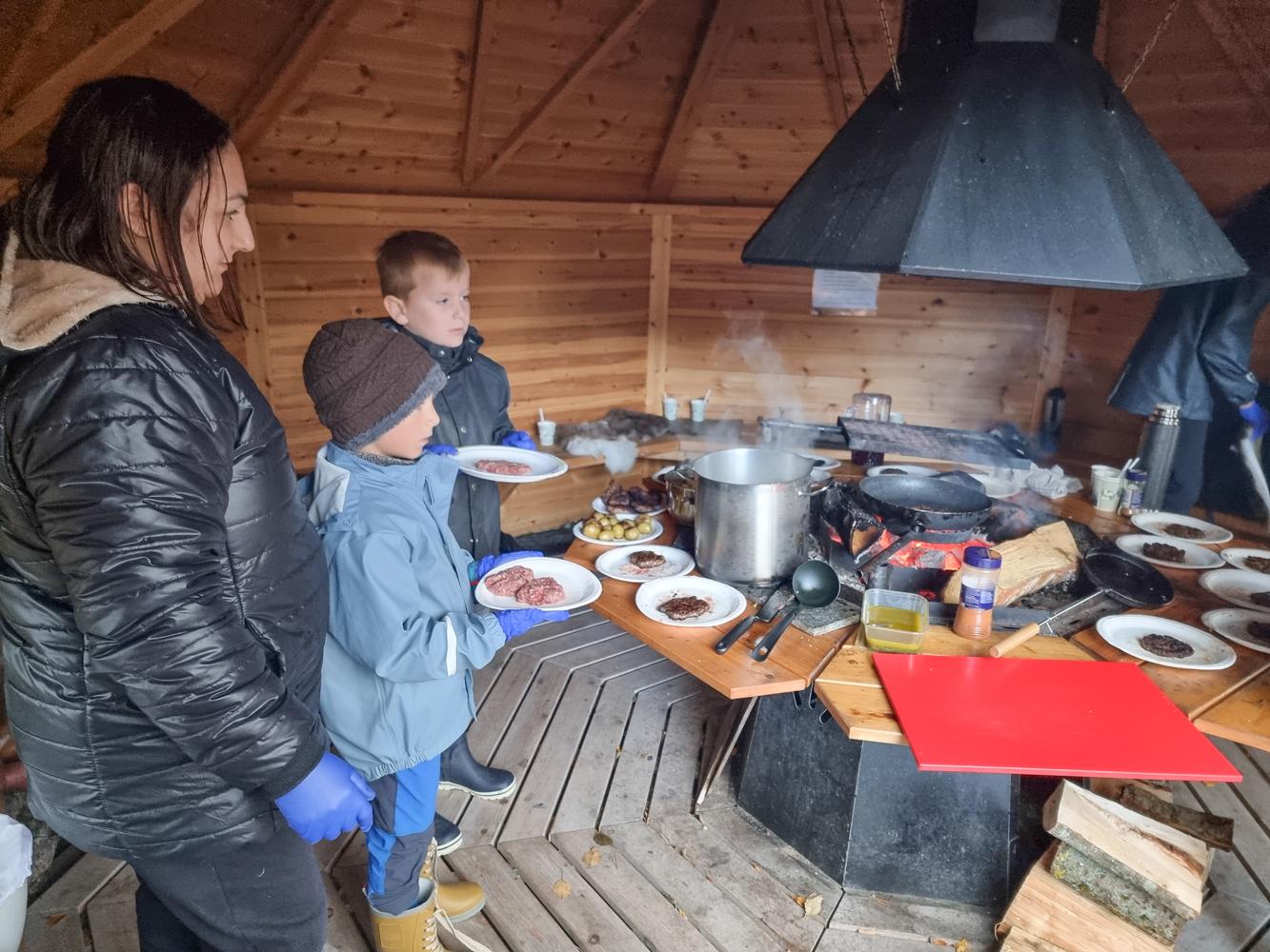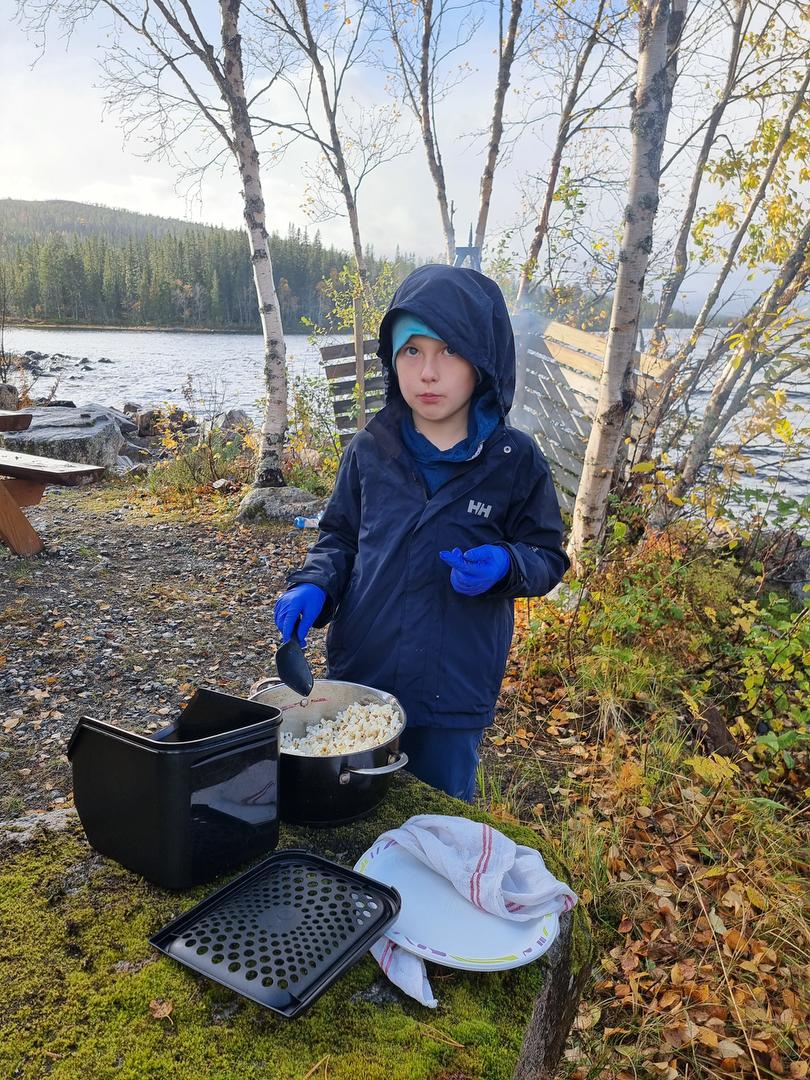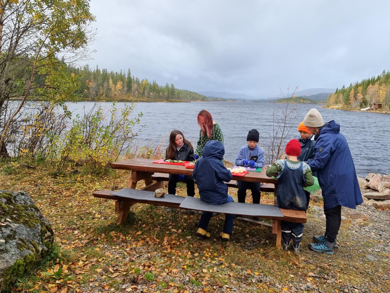 Alle hjalp til med både matlaging og opprydding. Noen regnbyger og vindkast tålte vi, og selve stormen kom først da vi pakket sammen. Perfekt timing og god stemning hele veien!