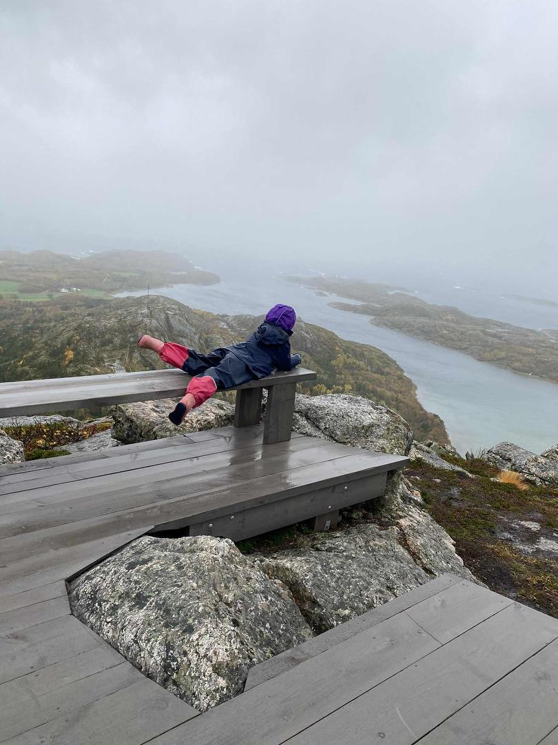 Kari Thorsen hadde med seg en gruppe i Jøatrappa både mandag og tirsdag. Litt dårligere sikt og vær på tirdag, men den sportye gjengen gjennomførte uansett! Det er herlig å være på tur, uansett vær! Noen gikk trappa for første gang, og noen har gått den mange ganger - men alle lærte noe nytt om lokalnavn på og utenfor Jøa, hva vi ser fra utsikten av Jøatrappa, og kanskje også litt om Olav Duun? Tusen takk til turleder Kari!