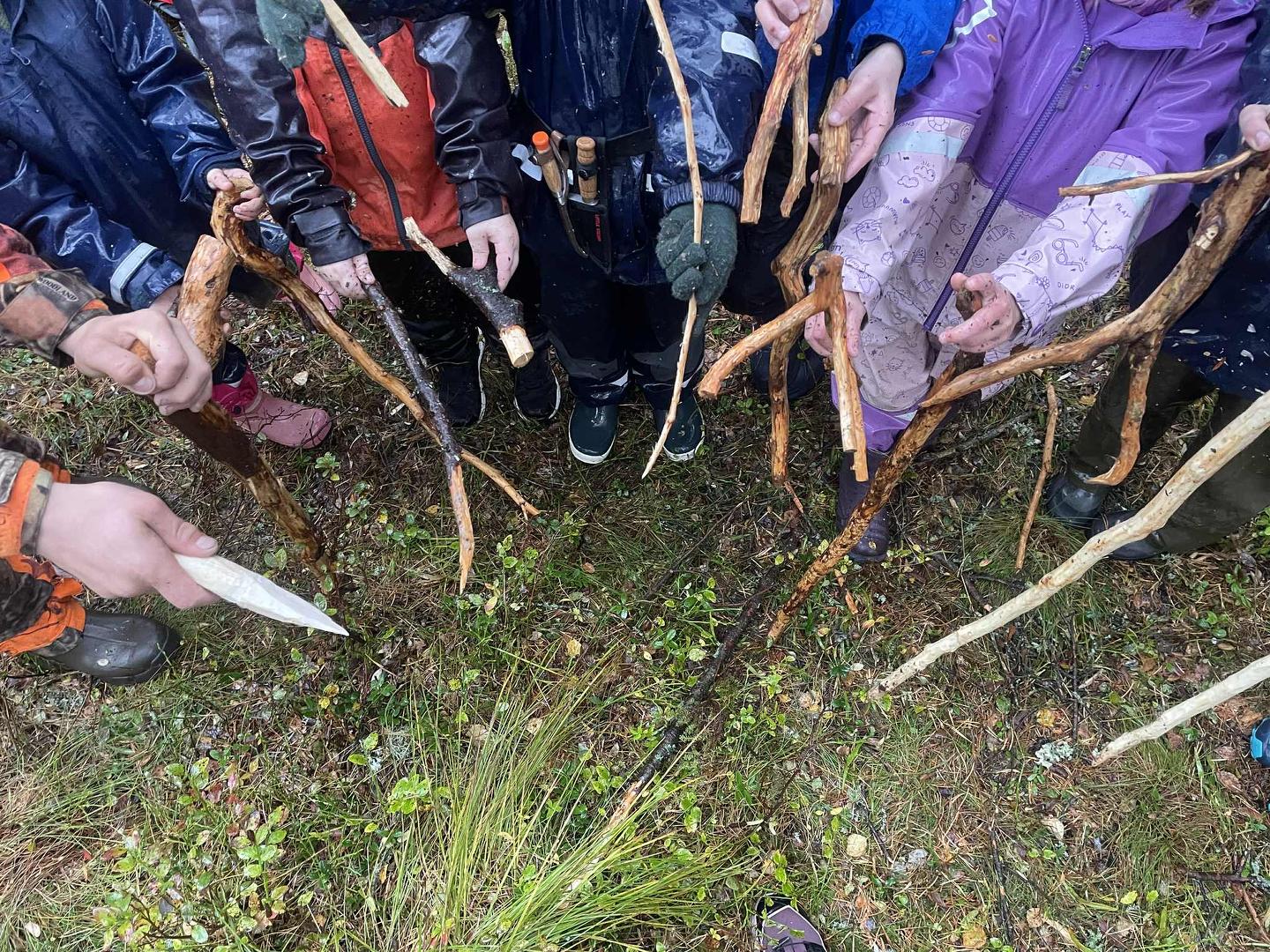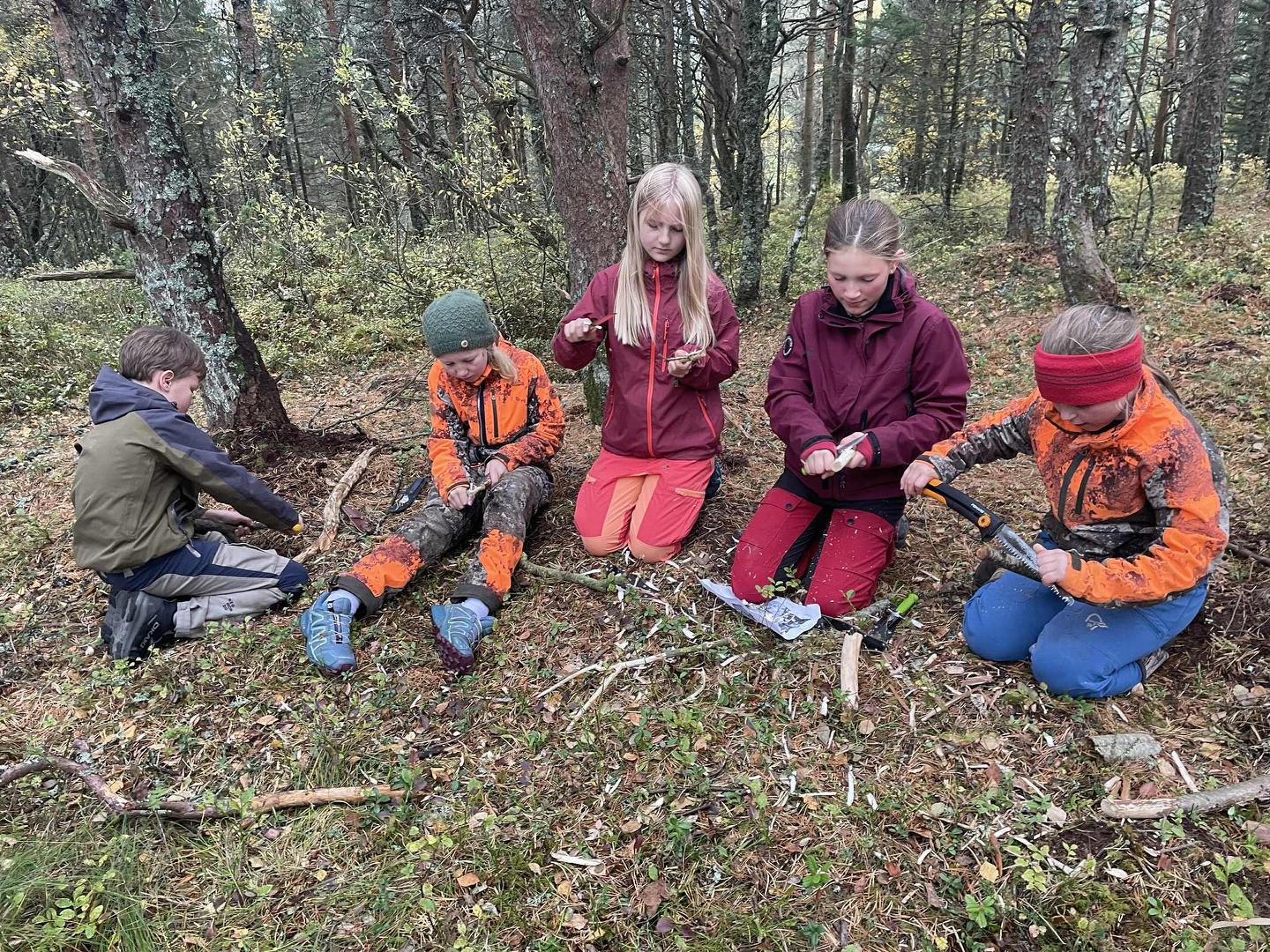 Denne aktiviteten fikk flest påmeldinger! En stor og ivrig gjeng gikk på tur både mandag og tirsdag. I sekken var spikkekniver med, og det ble laget mye spennende av emner ungene fant i skogen. Artig at dette ble så populært! Takk til Elin Jensen for ledelse av aktiviteten og for den gode ideen som virkelig traff midt i blinken!