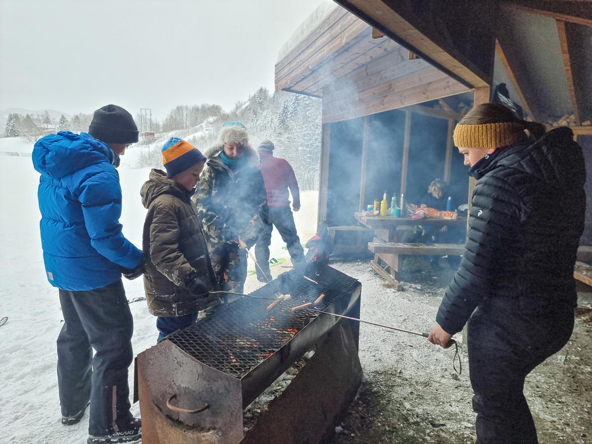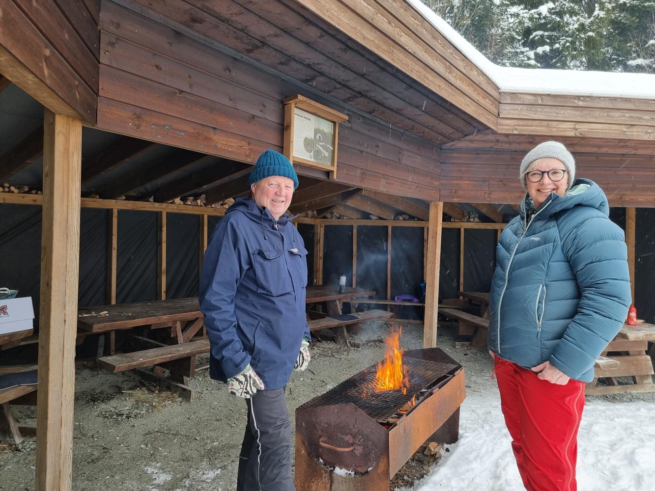 Torsdag formiddag var det åpen akedag i skileikbakken. Rundt 20 deltakere møtte opp til felles aking. Monica og Steinar fyrte bål, og de som ønsket kunne grille pølser.