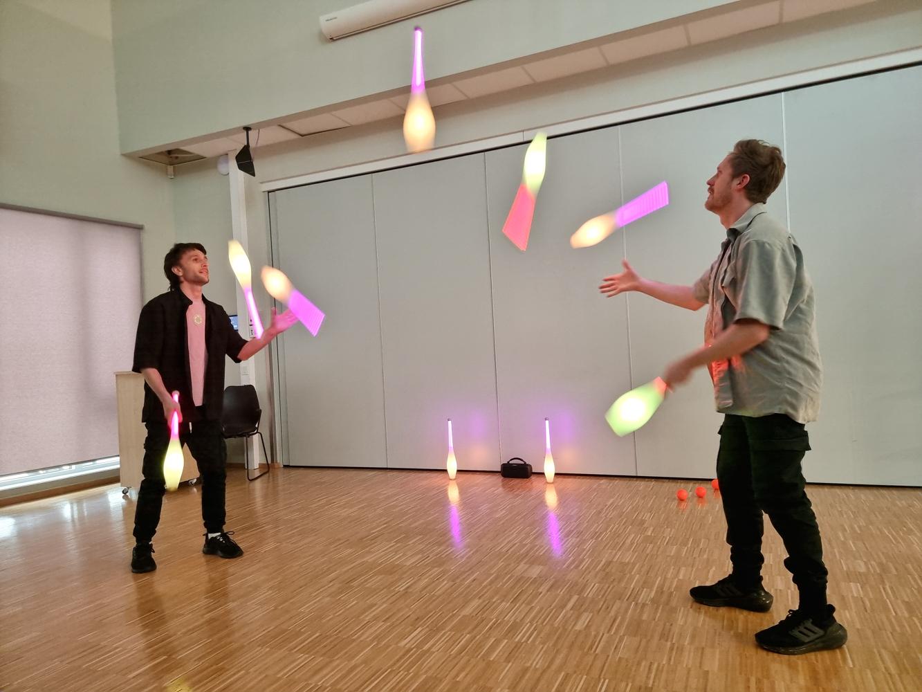 Dagen startet med et imponerende og inspirerende show fra Flaks sjongleringsgruppe med Håvard og Børre. Sjongleringen var både underholdende og lærerik. Flere valgte faktisk å delta på sjonglering begge øktene fordi det var så artig.